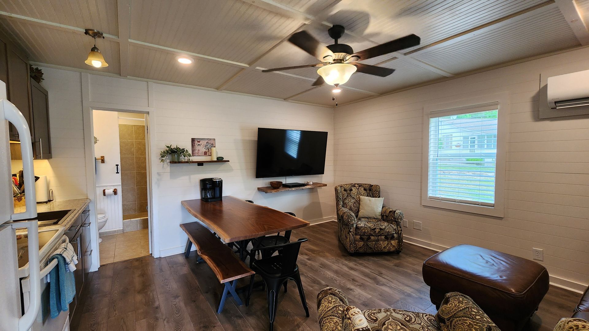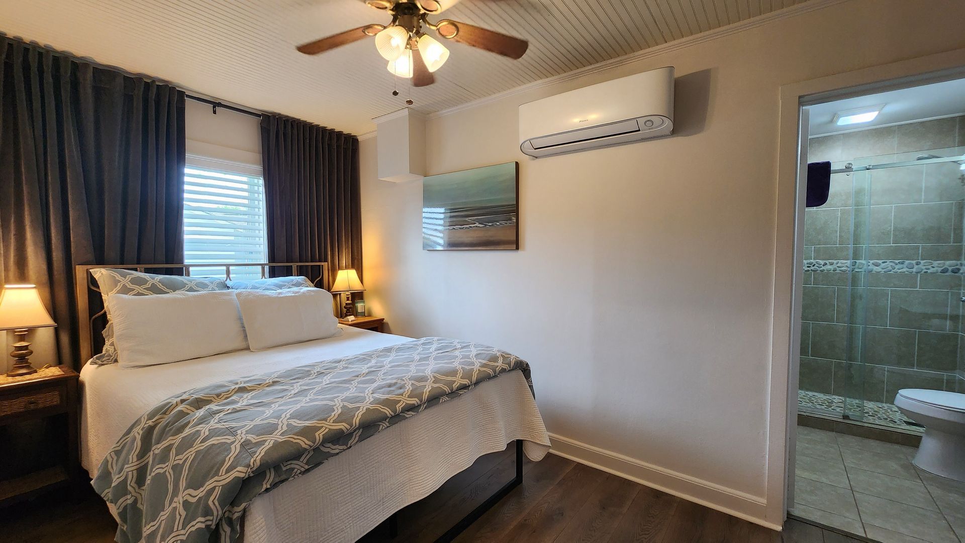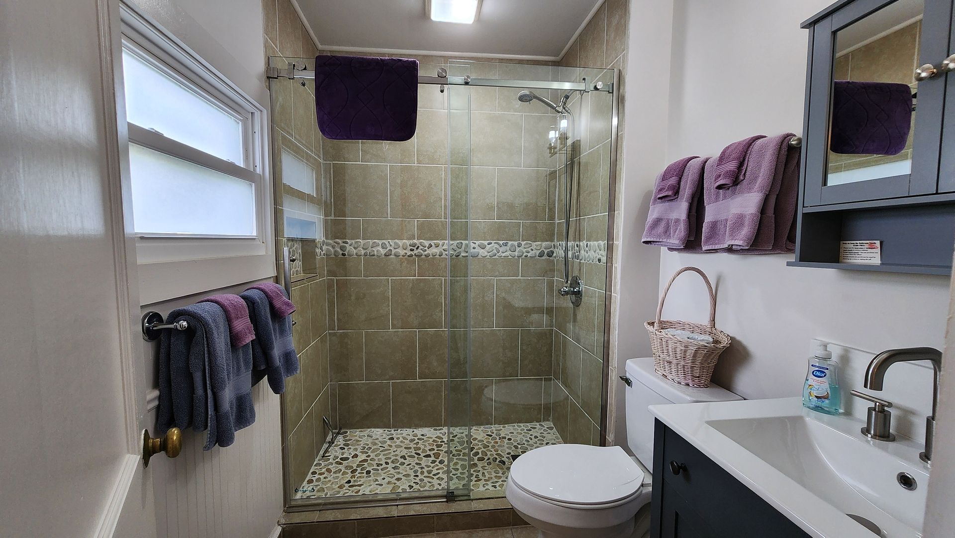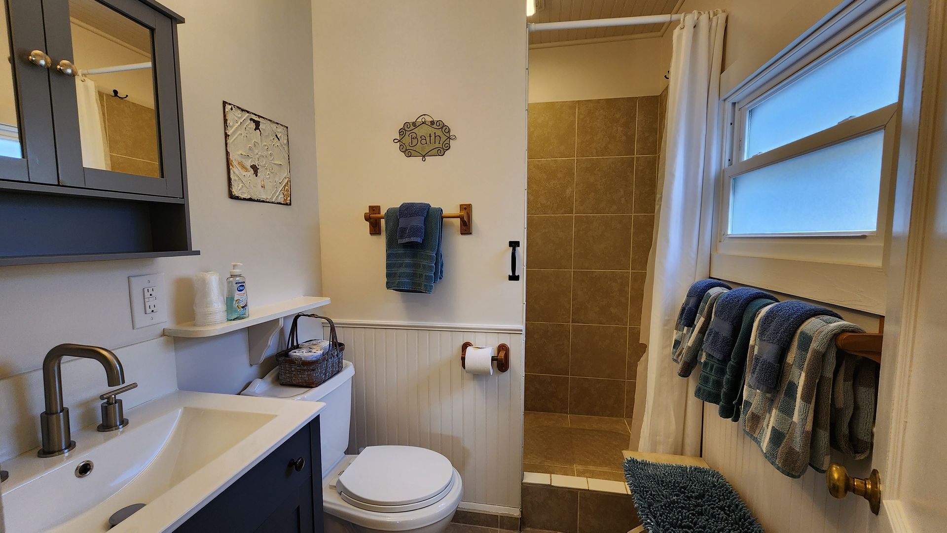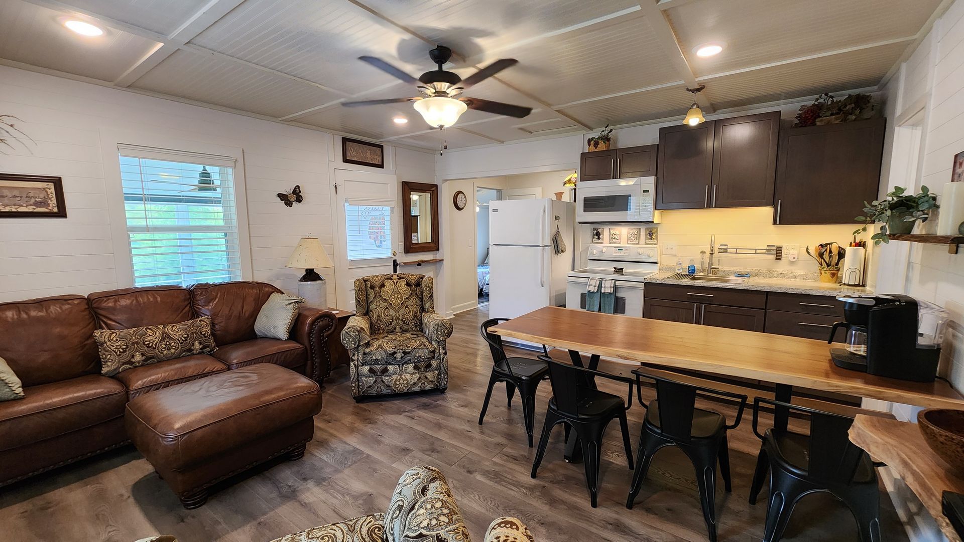 The tastefully decorated 3 bedroom / 2 bathroom cottage has a spacious kitchen and living area with a table large enough to seat 6 or more guests. The master bedroom has an adjoining bathroom.